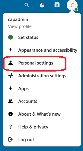 プルダウンメニューから「Personal settings」を選択します。