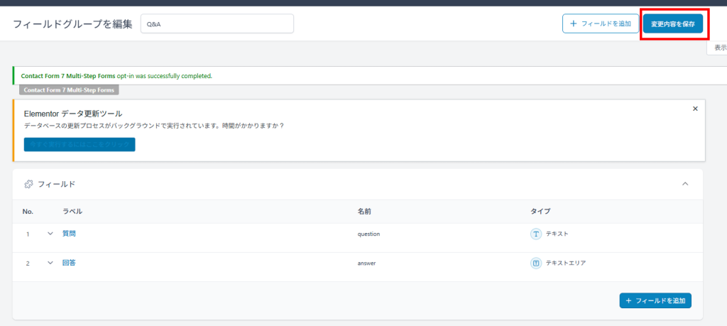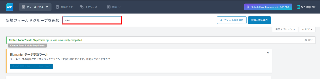 画面下部に、フィールドグループ「Q&A」が生成されていると思います。