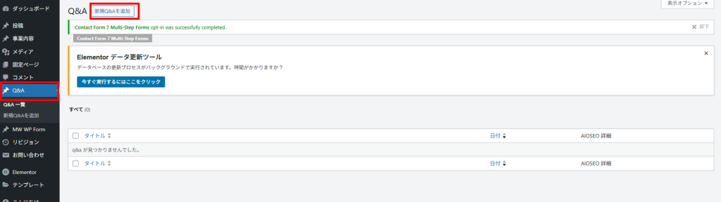 先ほど作成した投稿タイプを選択して、[新規Q&Aを追加]をクリックします。