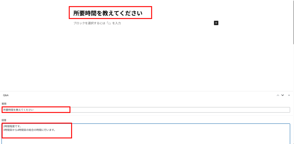 簡易的なQ&Aを作成します。新規投稿すると、Q&A欄に追加されていくようなイメージです。