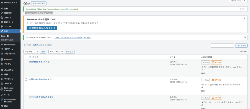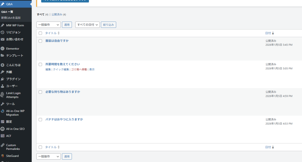 先ほどと同じ手順で「服装は自由ですか」を追加・公開しました。